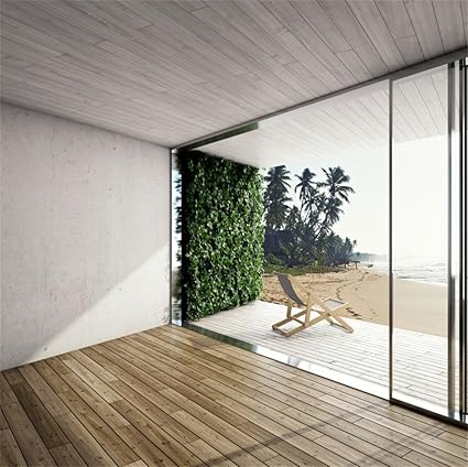 Lfeey 5x5ft Modern House Empty Living Room Background Luxury Home Summer Seaside Beach Sea Viewing Room Wooden Floor Large Terrace Backdrop Photo